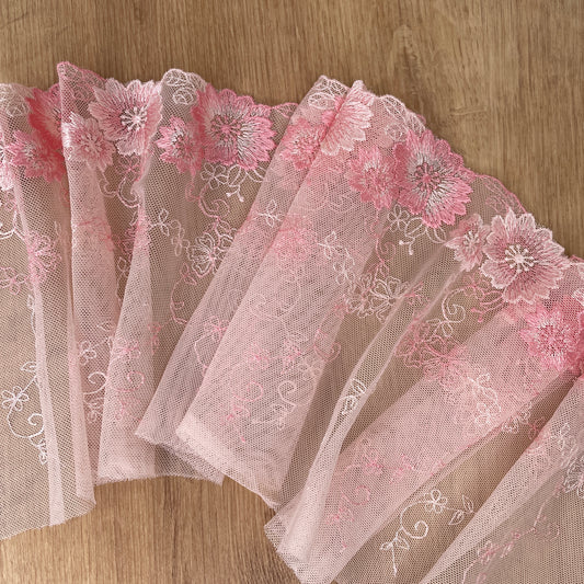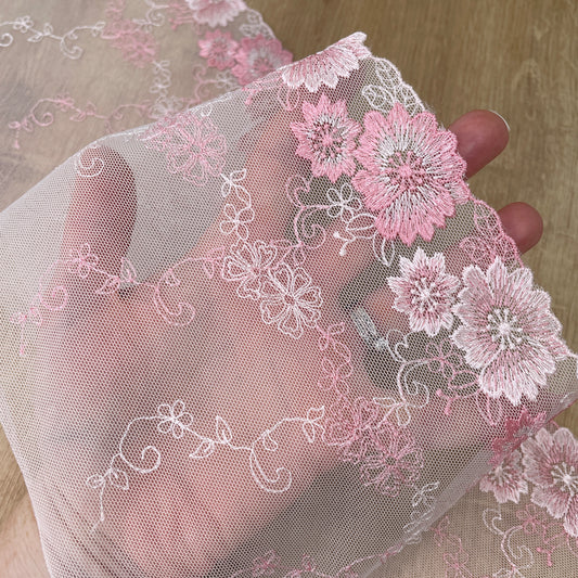 Embroidered Tulle ~ Peach Blossom (L+R)