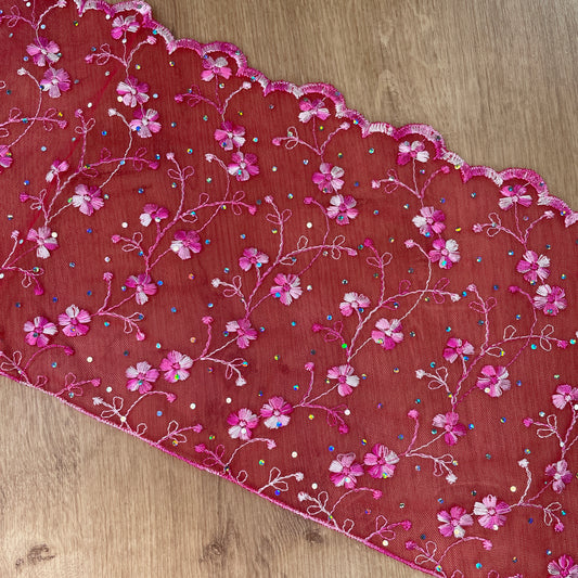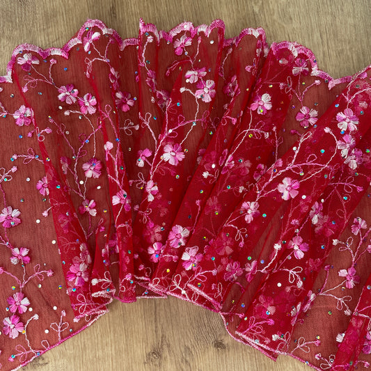 Embroidered Tulle ~ Red'n'Pink Floral (L+R)