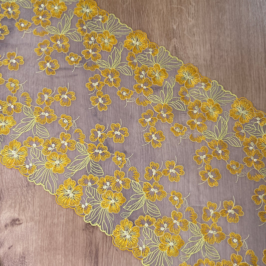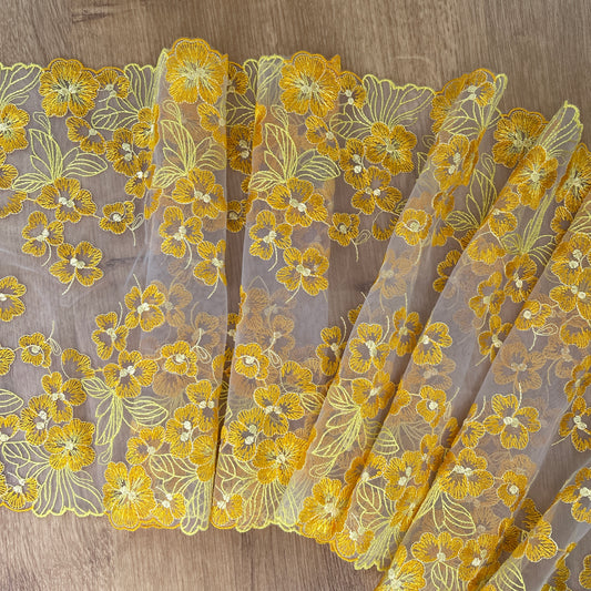 Embroidered Tulle ~ Lemon Zest (L+R)