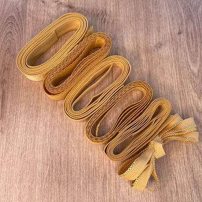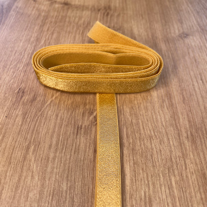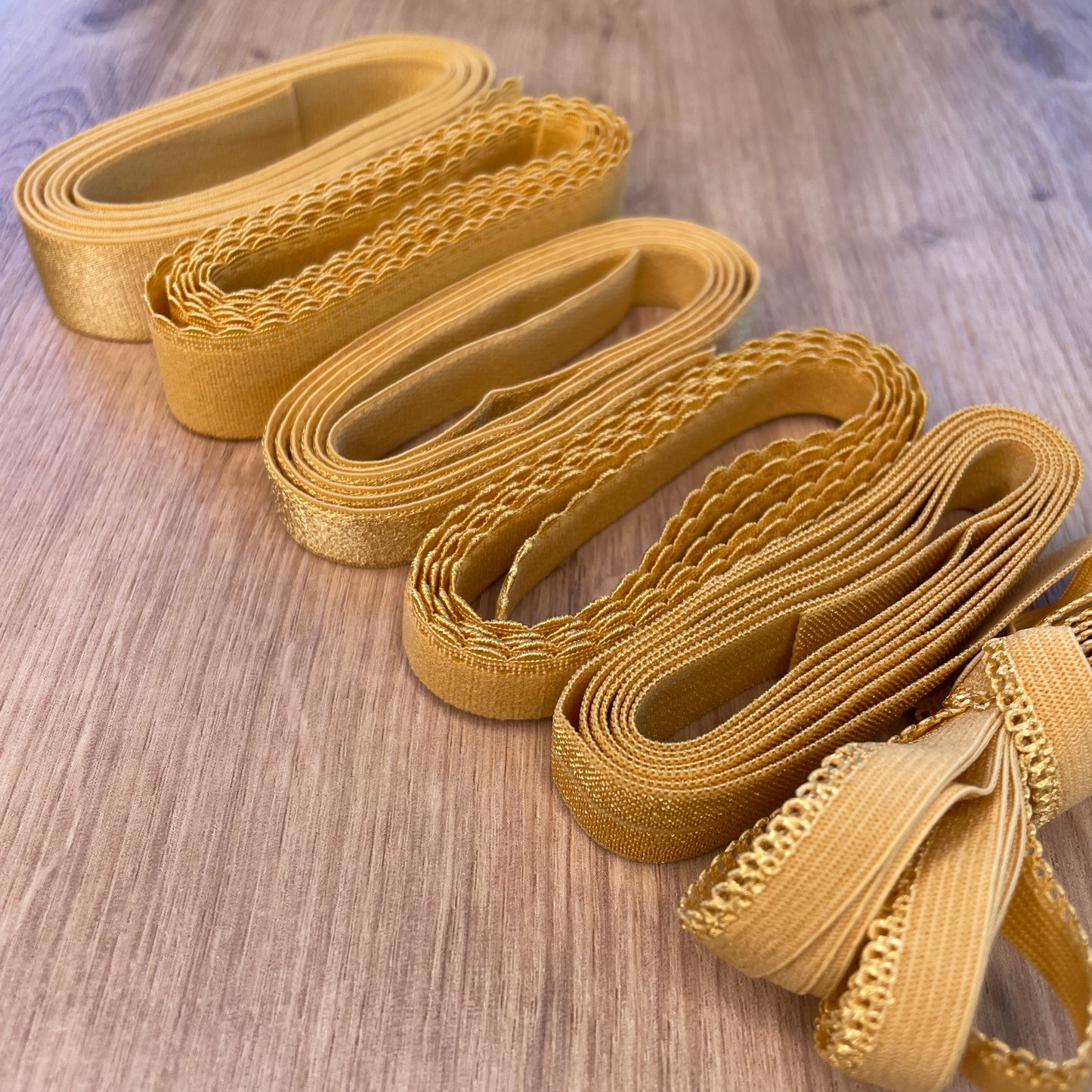 Strong and supportive elastic for creating bra straps and other strappy details on lingerie. Satin finish on the outer side with a plush backing that sits against the skin.