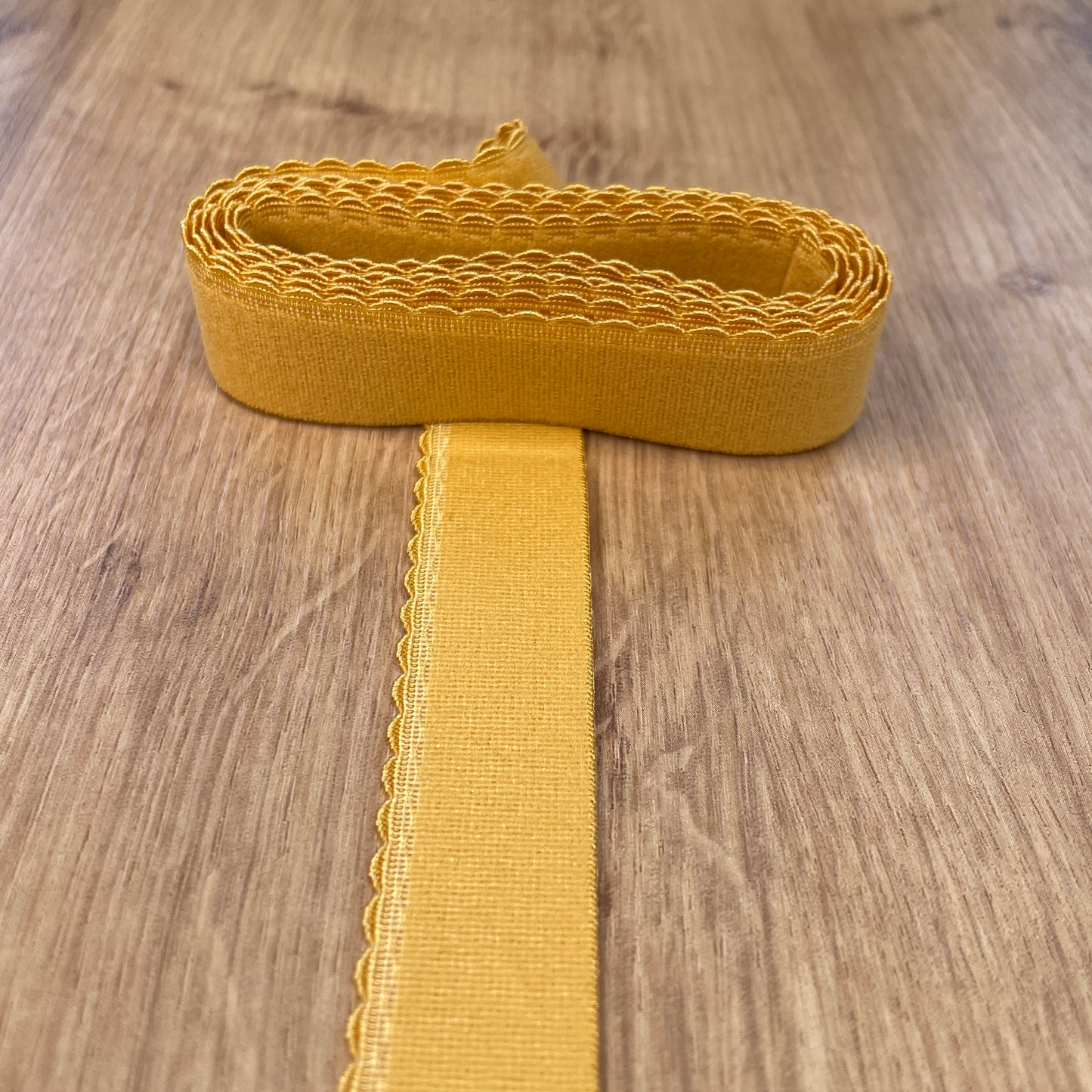 Band elastic is used around the bottom band of bras to help support the frame and provide a snug fit around the chest. It can also be used in place of picot or lingerie elastic where a more firm elastic is preferred. Plush both sides. Measurement includes the picot edge.