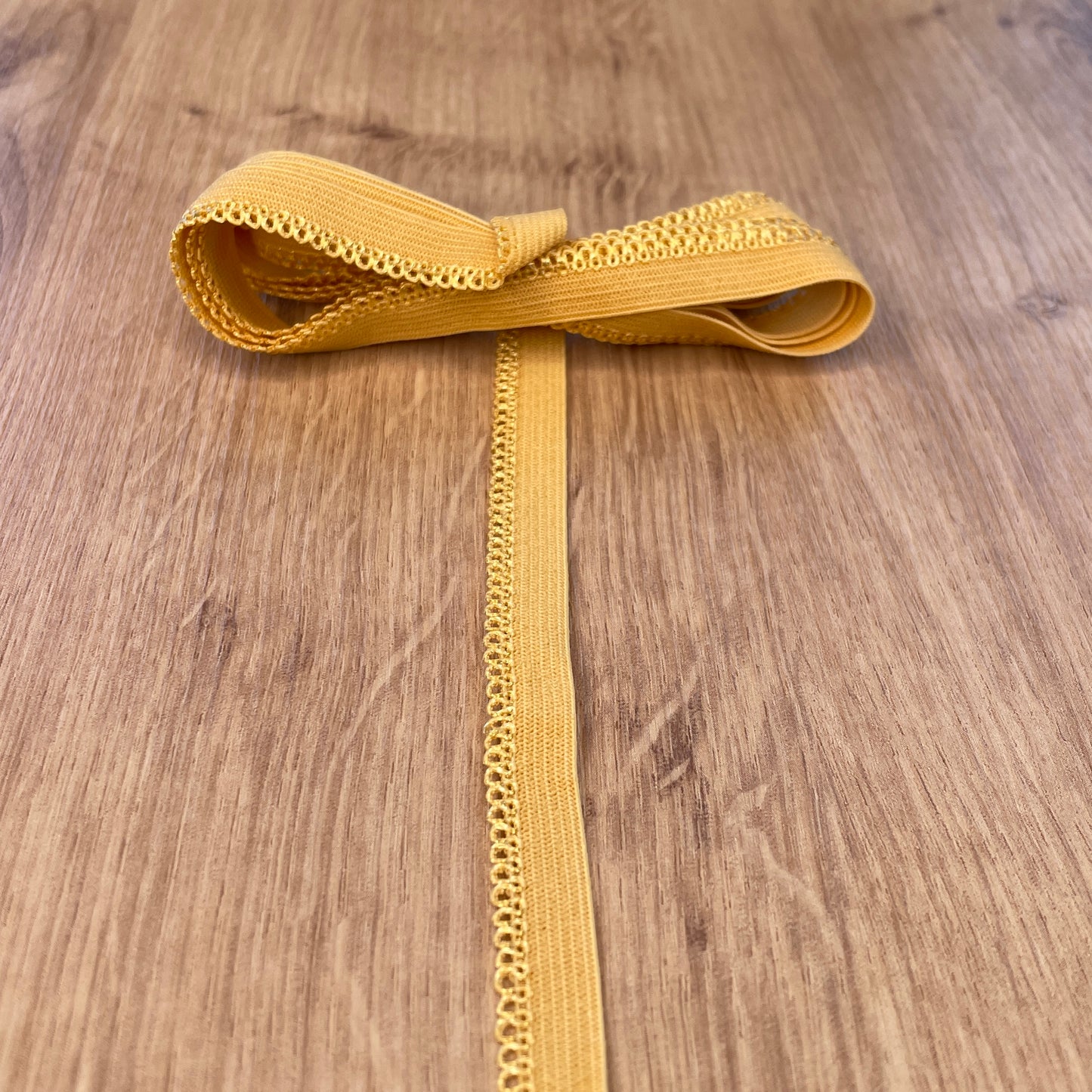 Lovely, soft elastic with great stretch recovery. Use for a clean edge finish in all types of lingerie. The elastic is folded in half along the fold line, enclosing the raw edge of the fabric. The measurement is the total, non-folded width.