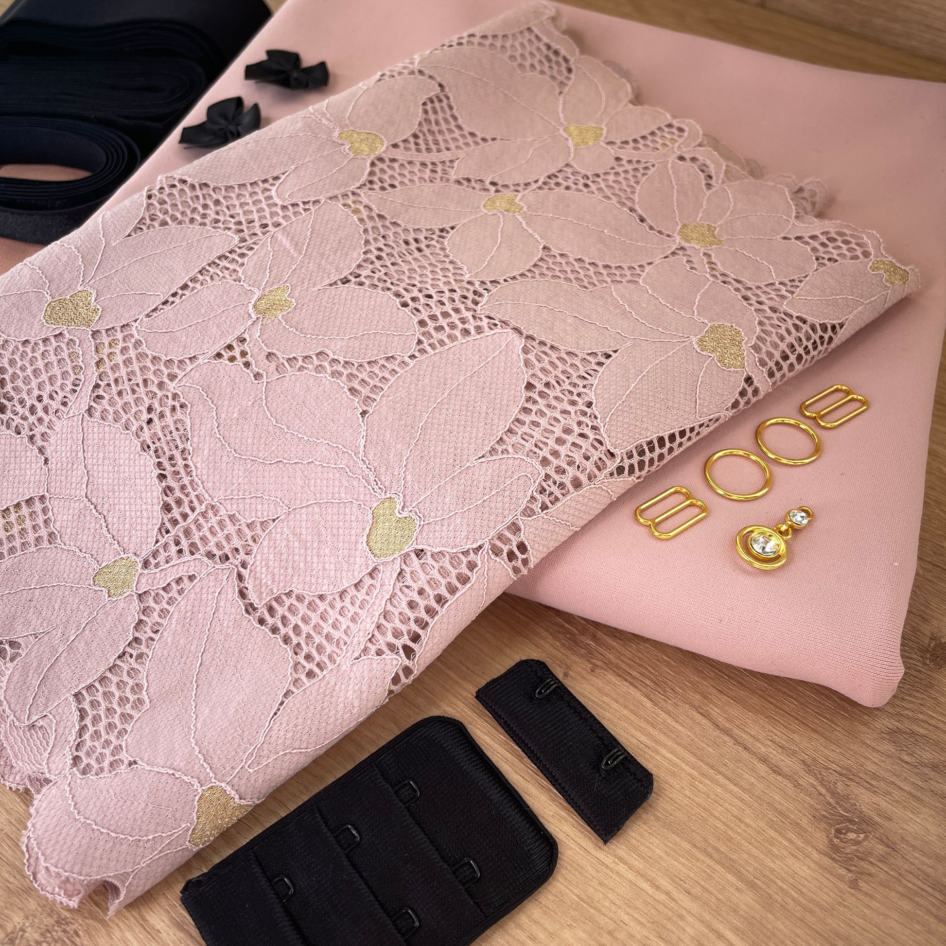 Choose all the additional elastics and findings to best work for the bra pattern you are using. You could even add additional lace and make two pairs of briefs!