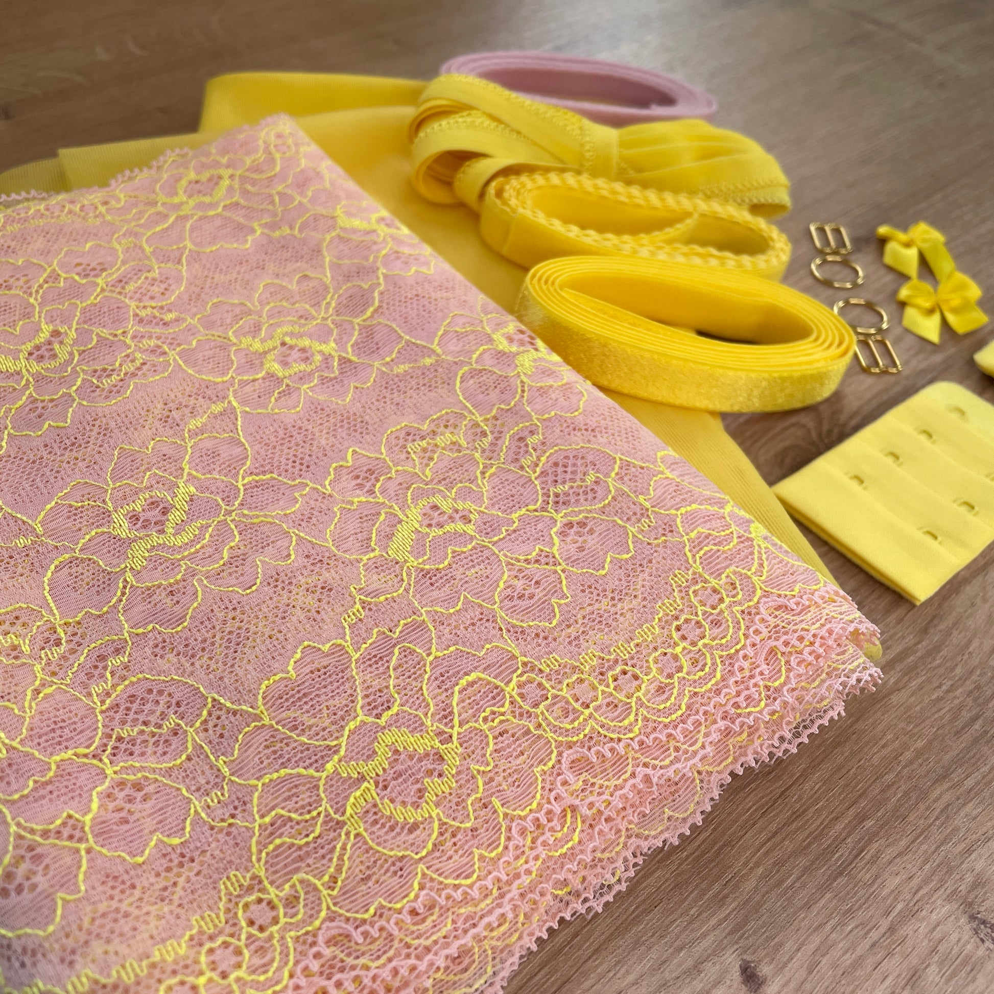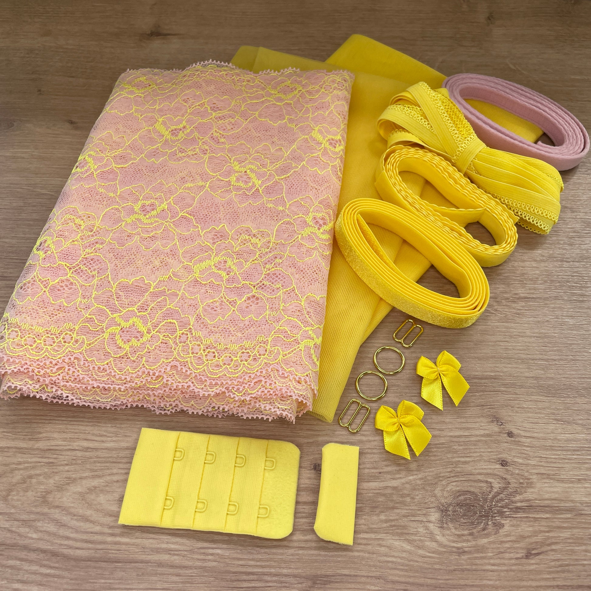 Choose all the additional elastics and findings to best work for the bra pattern you are using. You could even add additional fabric and elastics to make matching underwear!