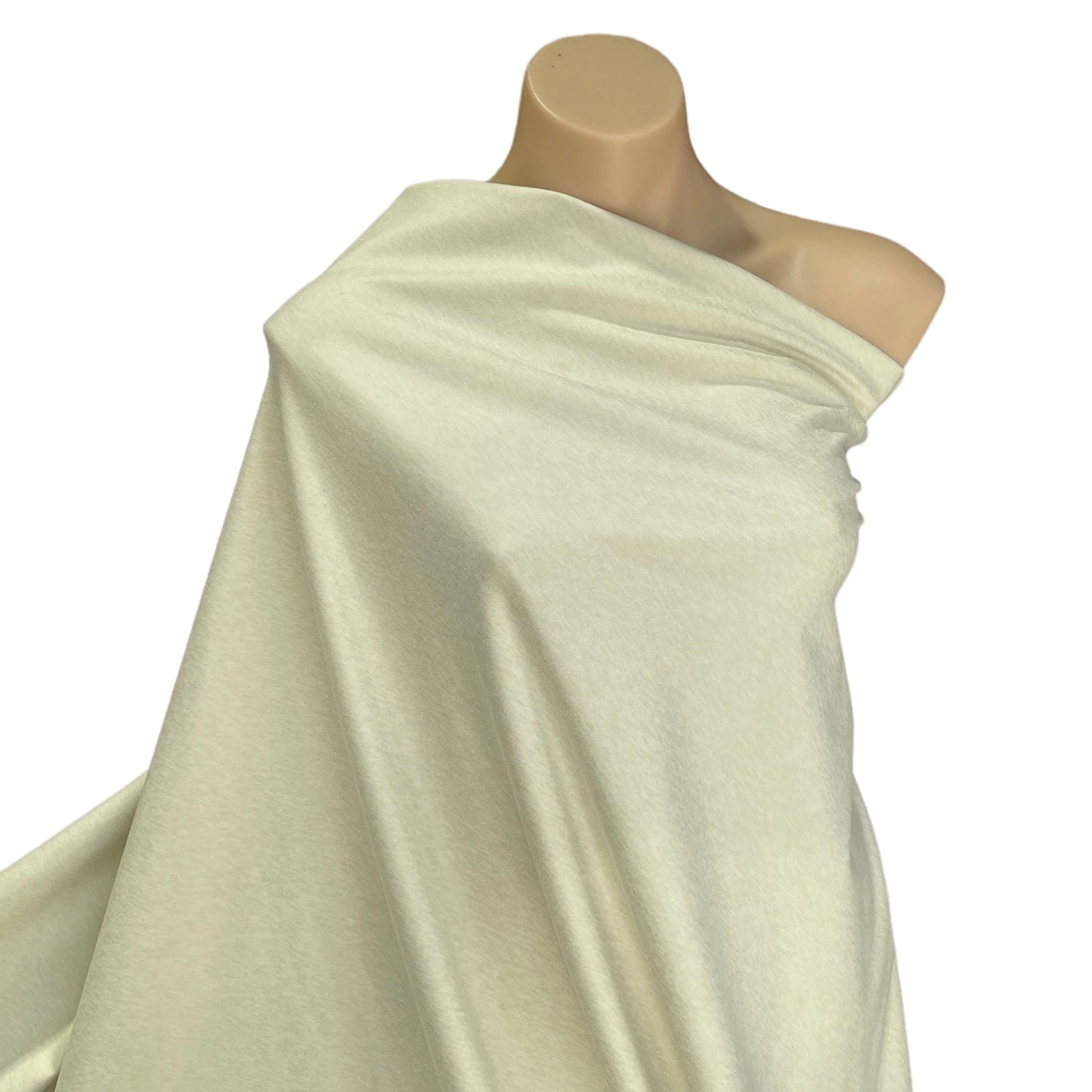 A weightier knit with a firm stretch that is topped with a double sided peached finish in a natural melange effect. Soft and comfortable to wear with its super soft finish it is also UV protective and quick drying.